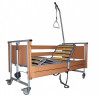 Регулируемые по высоте боковые ограждения с автофиксацией полностью интегрированы в корпус кровати, что исключает случайные травмы. Модель оснащена колёсами с индивидуальными тормозами для удобного и безопасного перемещения.