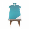 Каркас стола выполнен из стального сплава. Этот материал не подвержен коррозии, не портится от попадания влаги, не деформируется. Основание стола обшито деревом. В качестве наполнителя используется поролон толщиной 120 мм. Он не проминается, хорошо сохраняет свою форму и оказывает должную поддержку. Обивкой служит винил-люкс. Этот материал отличается высоким качеством. Он не протирается и не трескается, не портится от попадания влаги и косметических средств. Кроме того, он приятен на ощупь, не вызывает тактильного дискомфорта или аллергии. В комплекте есть удобный подголовник.