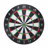 Комплект мишени включает в себя 6 дротиков с металлическими наконечниками, а также имеет 2 игровых поля с двух сторон для разных типов игры. Каждый дротик весит 16,5 грамм, что делает его легким и удобным для бросков. Кроме того, в комплекте идут флайты с американским и английским флагами, что делает эту мишень еще более интересной. Диаметр мишени составляет 45 см.