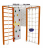 Модель Kampfer Fantastic включает в себя самый обширный набор аксессуаров - турник, шведскую стенку, канатный лаз, скалодром, пегборд, и самые популярное навесное оборудование канат, кольца и лиану. Крепкий металлический турник выдерживает нагрузку до 120 кг, подходит как детям так и взрослым. Навесное оборудование Kampfer на прочных тросах выдерживает нагрузку до 100 кг. Допустимая нагрузка на скалолаз, пегборд, канатный лаз и навесное оборудование 50 кг. Особенностью пристенной шведской стенки Kampfer Fantastic является угловая конструкция, большой двойной скалолаз имеющий 12 пластиковых зацепов. Малышам очень нравится - лазить по скалолазу, забираться вверх по сетке канатного лаза, перебираться по пегборду, висеть на канате и качаться на лиане.